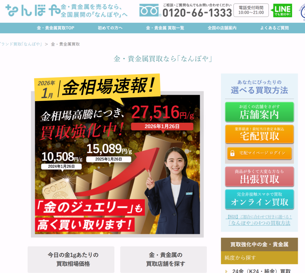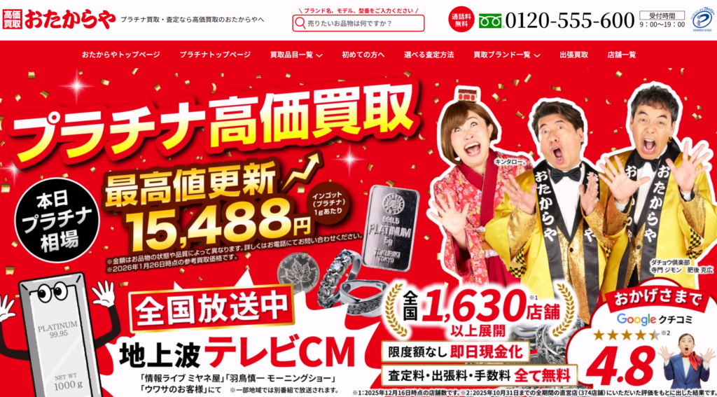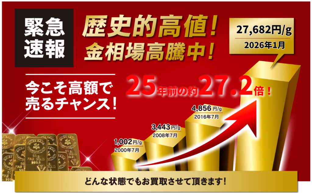 相場の透明性、分析機器による正確な査定、全国出張・即日支払い・査定無料という条件が揃っていて、他社と比較しても総合力が際立っています。