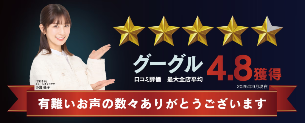 全国出張・査定無料・即日払いに対応しているため、「まずは価格だけ知りたい」という気軽な相談にもまねきやは最適です。